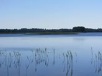 It is part of the Western Dvina (Daugava[4]) river basin, which flows across the border in Latvia.[5] The lake forms part of the watercourse of the Laucesa river, which runs across the Latian-Lithuanian border.[2][6] The lake is one of the few outside the protected areas in the district.[7] It has been declared as a water body of national importance by the government of Lithuania.[2] The lake has 31 islands and consists of the largest number of lake islands in the region.[8]