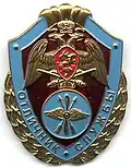 ![]() | Breast badge "For Distinction in Service in Special Circumstances" Нагрудный знак "За отличие в службе в особых условиях" | № 50 | 2017-02-14 | Awarded to servicemen, employees, federal state civil servants and workers of the troops of the National Guard of the Russian Federation for high performance in service (work) and diligence in performing tasks during periods of martial law or state of emergencies, during counter-terrorist operations, in conditions of armed conflict, during the liquidation of the consequences of accidents, natural and man-made disasters and other emergencies.[2] |