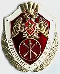 ![]() | Honorary title "Honoured Fellow of the National Guard" Почетное звание "Почетный сотрудник Росгвардии" | № 50 | 2017-02-14 | Awarded to military personnel, federal state civil servants and employees of troops of the National Guard of the Russian Federation who were previously awarded departmental awards of the National Guard and with seniority (experience) in military service or in the state civil service of at least 15 years: for the efficient organization of work and the pursuit of excellence in the performance of operational-territorial units, formations, military units and organizations of the troops of the National Guard of the Russian Federation as well as territorial organs of the National Guard; for the exemplary fulfillment of military and service duties, for displaying initiative and dedication; for outstanding achievements in the development of the National Guard, enhancing the prestige of military service (service) that promote the rule of law, who have made a significant contribution to the development and implementation of public policy and legal regulation in the sphere of National Guard activities, in the development National Guard, in the discharge of National Guard authority; for long and effective civil service; for many years of conscientious and impeccable work.[2] |