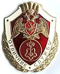 ![]() | Breast badge "For Distinction in Service" 2nd class Нагрудный знак "За отличие в службе" II степени | № 50 | 2017-02-14 | Awarded to servicemen and employees of the troops of the National Guard of the Russian federation for initiative, diligence and distinction displayed in the performance of their tasks to protect public order, ensure public safety, protect important state facilities, special cargoes, communications facilities; for participation in the struggle against terrorism and extremism, participation in the provisions of emergency situations, martial law, counter-terrorist operations, as well as for active participation and displayed distinction during the tasks of liquidating the consequences of accidents, disasters, fires, natural disasters and other emergencies; for high performance in combat (operational-service) training; to citizens of the Russian Federation who distinguished themselves in assisting in the fulfillment of tasks and exercising the powers conferred on the troops of the National Guard of the Russian Federation. The highest class is the 1st class. Awards are carried out from the lowest to the highest class. Servicemen and employees, previously awarded the decoration of Internal Troops of the MVD "For Distinction in Service" 2nd class can be awarded with the National Guard decoration "For Distinction in Service" 1st class without award if the same decoration 2nd class.[2] |
