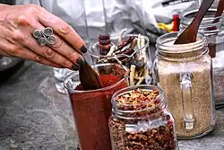 Traditional Indian herbal medicinal products have been found to contain harmful levels of heavy metals, including lead.[124] For example, ghasard, a product commonly given to infants for digestive issues, has been found to have up to 1.6% lead concentration by weight, leading to lead encephalopathy.[125] A 1990 study on ayurvedic medicines in India found that 41% of the products tested contained arsenic, and that 64% contained lead and mercury.[9] A 2004 study found toxic levels of heavy metals in 20% of ayurvedic preparations made in South Asia and sold in the Boston area, and concluded that ayurvedic products posed serious health risks and should be tested for heavy-metal contamination.[126] A 2008 study of more than 230 products found that approximately 20% of remedies (and 40% of rasashastra medicines) purchased over the Internet from U.S. and Indian suppliers contained lead, mercury or arsenic.[24][127][128] A 2015 study of users in the United States found elevated blood lead levels in 40% of those tested, leading physician and former U.S. Air Force flight surgeon Harriet Hall to say that "Ayurveda is basically superstition mixed with a soupçon of practical health advice. And it can be dangerous."[129][130] A 2022 study found that ayurvedic preparations purchased over-the-counter in Chandigarh, India, had levels of zinc, mercury, arsenic and lead over the limits set by the Food and Agriculture Organisation / World Health Organisation. 83% exceeded the limit for zinc, 69% for mercury, 14% for arsenic and 5% for lead.[23] In 2023, the Victorian Department of Health issued a health advisory warning that unregulated ayurvedic products sold in the state may contain unsafe levels of lead, mercury and arsenic, as well as harmful compounds from the plants Azadirachta indica and Acorus calamus.[131]