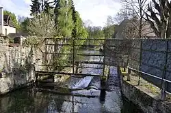 In Charmes, the land of springs, fountains and water ditches of the Bèze basin, the water is flush with the soil so that the inhabitants of the region name the place "the fishpond" . It is in fact the moat of an old castle. There the Bèze is fed into a small stream, the Gailloux.[35] In Savolles, even though the Bèze does not cross the territory of this municipality, a reserve of water in case of fire was created on the ridge line between the Bèze and the Albane, filled in the 1950s during the erection of the water tower.[36]