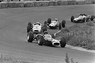 The BRM P261, also known as the BRM P61 Mark II, is a Formula One motor racing car, designed and built by the British Racing Motors team in Bourne, Lincolnshire, England. The BRM P261 was introduced for the 1964 Formula One season, and its design was an evolution of Tony Rudd's one-off BRM P61 car of 1963. The P261 had a relatively long racing career; variants of the car were still being entered for Formula One World Championship Grands Prix as late as 1968. During the course of their front-line career, BRM P261s won six World Championship races, in the hands of works drivers Graham Hill and Jackie Stewart, and finished second in both the Drivers' and Constructors' Championship standings in 1964 and 1965. Stewart, Hill and Richard Attwood also used works P261s to compete in the Tasman Series in 1966. The BRMs dominated, with Stewart winning four, Hill two, and Attwood one of the 1966 Tasman Series' eight races.[1] Stewart also won the title. The works-backed Reg Parnell Racing team returned in 1967 with Stewart and Attwood, where Stewart added another two wins to his tally. In terms of races won and total championship points scored, the P261 was the most successful car in BRM's history.[2]