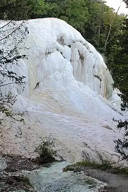 Bagni San Filippo is an area in the municipality of Castiglione d'Orcia in the Province of Siena, Italy, not far from Monte Amiata. It is a small hot spring containing calcium carbonate deposits, which form white concretions and waterfalls. The name derives from that of St Philip Benizi, who was a prior of the Servite order, and who lived as a hermit here in the thirteenth century. The grotto is open to visitors.[1]