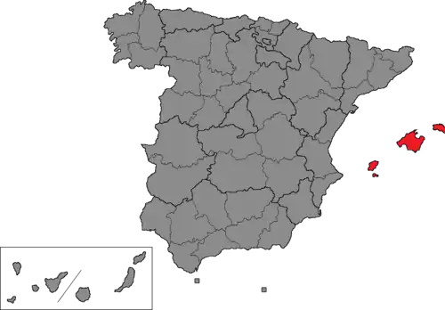 The Balearic Islands (Catalan: Illes Balears, Spanish: Islas Baleares)—Balearics until 2000 (Spanish: Baleares, Catalan: Balears)—are one of the 52 constituencies (Spanish: circunscripciones) represented in the Congress of Deputies, the lower chamber of the Spanish parliament, the Cortes Generales. The constituency currently elects eight deputies. Its boundaries correspond with those of the Balearic Islands. The electoral system uses the D'Hondt method and closed-list proportional representation, with a minimum threshold of three percent.