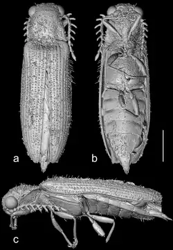 - ^ Kundrata, Robin; Bukejs, Andris; Prosvirov, Alexander S.; Hoffmannova, Johana (19 November 2020). "X-ray micro-computed tomography reveals a unique morphology in a new click-beetle (Coleoptera, Elateridae) from the Eocene Baltic amber". Scientific Reports. 10 (1): 20158. Bibcode:2020NatSR..1020158K. doi:10.1038/s41598-020-76908-3. ISSN 2045-2322. PMC 7677381. PMID 33214585.