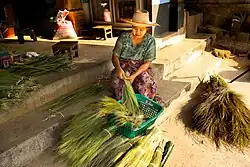 The Akha women wear much silver and often wear striped leggings in order to carry firewood and dry goods up to their homes. The houses in Ban Hin Taek are not built in an Akha style, but instead show signs of Yunnanese influence. They are built of wattle and mud on solid ground instead of the commonly found houses built on stilts.[4]