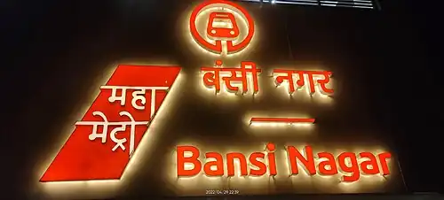 Bansi Nagar is an elevated metro station on the East-West corridor of the Aqua Line of Nagpur Metro in Nagpur, India. It was opened on 23 September 2020.[1][2]