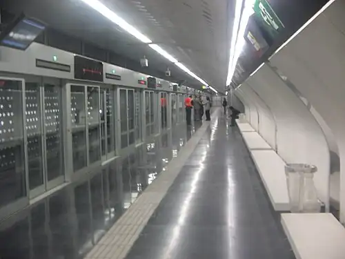 Line 9 (Línia 9 in Catalan) is a rapid transit line of the Barcelona Metro network. A fully-automated line, it started operation on December 13, 2009. Part of the line is still under construction, with 24 stations currently in operation in Barcelona, El Prat de Llobregat, L'Hospitalet de Llobregat, and Santa Coloma de Gramenet. The line is currently operated as two disconnected branches; the Aeroport T1 – Zona Universitària section is known as L9 South (L9 Sud in Catalan) while the La Sagrera – Can Zam portion is known as L9 North (L9 Nord in Catalan). The line's missing central section, expected to be completed by 2030, shares a significant portion of its tracks with Line 10.[1]