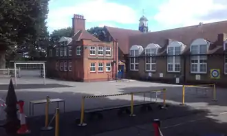The school was enlarged again in 1929–31, and an extension was completed in 1952.[1] The amalgamation of the former infant and junior schools in September 2006 produced the new name, Barclay Primary School.[2] The school was further expanded in 2011 to facilitate an increase from four-form to six-form entry from September of that year. It amongst the largest primary schools in England, which are known unofficially as "Titan" primaries.[3] The school converted to academy status on 1 September 2012.[4]