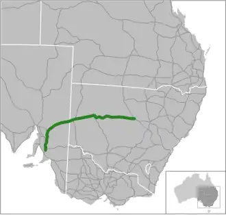Barrier Highway is a highway in South Australia[4] and New South Wales, and is designated part of route A32. The name of the highway is derived from the Barrier Ranges, an area of moderately high ground in the far west of New South Wales, through which the highway traverses.