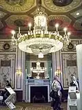 In 1952, the new owners, Lord and Lady Iliffe, had the now bare room painted by the decorator John Fowler and transformed it to a drawing room. During the late 20th century, the artist Alec Cobbe was employed to redecorate the room in a style similar to the original scheme by de Bruyn. Much of Carr's "loops and bows" plasterwork had survived, and this, coupled with a fireplace and doors salvaged from Panton Hall and very similar to those which crossed the Atlantic, allowed the room to return to its original neoclassical form.[41]
