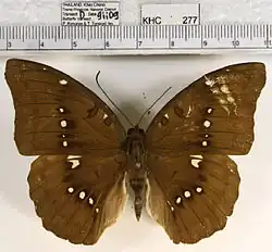 - ^ Otaki, JM (23 September 2020). "Morphological and Spatial Diversity of the Discal Spot on the Hindwings of Nymphalid Butterflies: Revision of the Nymphalid Groundplan". Insects. 11 (10): 654. doi:10.3390/insects11100654. PMC 7598249. PMID 32977583.
