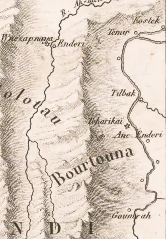 The Battle of Endirey was a major confrontation between the Russian Empire and its allies with the Chechens and Kumyks and took place in a gorge on the Aktash River near Endirey. An army sent led by Brigadier Andrei Veterani was encircled by a combined Chechen–Kumyk force, as a result of which the corps was defeated and forced to retreat. Another detachment under Colonel Naumov broke into Endirey and destroyed it.