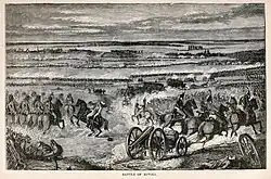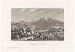 The Battle of Rivoli (14 January 1797) was a key military engagement during the War of the First Coalition near the village of Rivoli, then part of the Republic of Venice. In the climax of the Italian campaign of 1796-1797, the outnumbered French Army of Italy commanded by General Napoleon Bonaparte decisively defeated the attacking Austrian army commanded by General of the Artillery Jozsef Alvinczi, who was attempting to march south in a fourth and final attempt to relieve the siege of Mantua.[5] The French victory at Rivoli further demonstrated Bonaparte's capability and deftness as a military commander, and led to the Austrian surrender of Mantua in February, French consolidation of northern Italy, and ultimately France's victory over Austria in the war later that year.