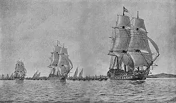 The Swedes reached the Ume River the following day, on the 21st, just as the last Russian battalion was in the process of crossing. A small skirmish occurred, which was followed by an artillery duel across the river. The fighting had cost both sides a little more than ten dead and some wounded.[115][116] A small Swedish force crossed the river to Umeå and attacked the Russian field hospital, taking some prisoners. On the 22nd, as Wrede made preparations to storm the city, Kamensky ordered a general retreat as he feared being cutoff once again, had Puke landed further north. The last Russian battalion left Umeå on the 23rd and Djäkneboda the following day, after which the retreat continued towards Piteå, where Kamensky arrived on the 29th. Wrede marched into Umeå on the 24th.[117] Instead of immediately sailing north to cut off the Russian retreat, Puke was contented with securing Umeå; Wachtmeister once again disembarked at Ratan on the 28th and marched towards the city, where the fleet likewise sailed the next day. The two forces were thus finally united at the given destination, albeit a little too late.[118]