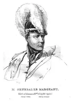 Cotton had two brigades of heavy cavalry available, commanded by John Le Marchant, [b] and Sir John Slade [c] respectively, as well as one of light cavalry under Frederick Ponsonby [d].[3] Only Ponsonby's brigade and the 5th Dragoon Guards were involved in the fighting. The French cavalry attached to D'Erlon's two infantry divisions was commanded by Charles Lallemand, and was composed of the 2nd Hussars and the 17th and 27th Dragoons.[3]