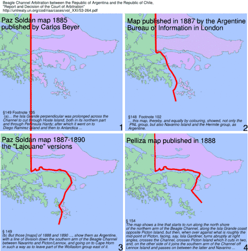 The Beagle Channel Arbitration Court reviewed in-depth the cartography of the zone and stated that:[1]: §163
