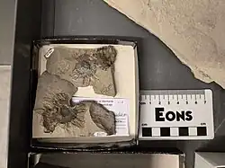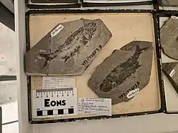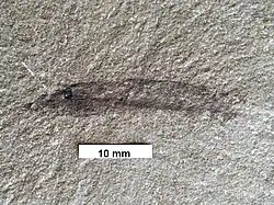 The Bear Gulch Limestone is a konservat lagerstätte, meaning that its fossils are uniquely well-preserved, including soft tissue details which offer rare insights into the biology of Carboniferous organisms.[2] The fine-grained sediments common in the formation allow for fossilized structures to retain fine resolution, as seen in equivalent plattenkalk-based lagerstätten throughout geological history. Most fossils are isolated and flattened into very thin films between sheet-like layers. Arborispongia assemblages, cephalopod shells, and large vertebrate bones occasionally project through several thin layers, approaching three-dimensional preservation.[14][15]