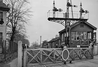 After the Surrey Iron Railway went out of business in 1846, a new railway was built on the line by the Wimbledon and Croydon Railway, which opened the station on 22 October 1855.[1] It was originally named Beddington but was renamed in January 1887 to Beddington Lane. In 1919 it became Beddington Lane Halt, but reverted to Beddington Lane on 5 May 1969.[2]