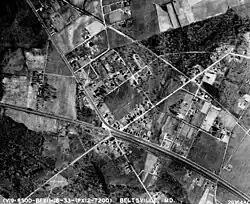 The original area developed haphazardly and consisted of a few residences, two churches, several small stores, a blacksmith, and a wheelwright. In 1891, the Beltsville Land Improvement Company was chartered and over the next thirty years developed the South Beltsville subdivision as a grid of streets. The developers sold the lots to individual owners and placed restrictive covenants on the deeds, including forbidding the manufacture or sale of alcohol and the sale of any property to an African American. Beltsville was marketed to professionals who wanted to escape the congestion of Washington and was developed with a mixture of Victorian-style houses and Colonial Revival houses. The community grew further when an electric railway was extended to Beltsville. The railway began as the Berwyn and Laurel Electric Railroad, but after suffering from financial difficulties it was acquired by the City and Suburban Railway. Located to the west of the railroad, along the line of present-day Rhode Island Avenue, the streetcar line served as the nucleus for additional subdivisions. These areas continued to develop slowly throughout the 1930s and 1940s with the construction of modest side-gable residences. Development continued after the introduction of the automobile, but it was not until after World War II that intensive development came to the Beltsville area.[15][16]