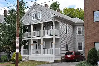 The Benjamin F. Clough House is a historic house in Waltham, Massachusetts. Built c. 1855, the 2+1⁄2-story wood-frame house is one a few temple-front Greek Revival houses in the city. Although it has retained Ionic columns supporting its two-level porch and front gable, it has lost other details, including paneled piers on which the columns rested, as well as Colonial Revival corner brackets. The Palladian window in the front gable end is also a Colonial Revival addition, recently modified with modern sashes. Benjamin Clough, the owner, operated a shoe manufactory at the back of the property.[2] The house was listed on the National Register of Historic Places in 1989.[1]