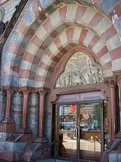 Designed by New York architect William Appleton Potter, the original Berkshire Athenaeum building was erected in 1874-1876 as a gift from railway magnate and native son Thomas Allen. It is in the High Victorian Gothic style, constructed of dark blue limestone from Great Barrington, red freestone from Longmeadow and red granite from Missouri.