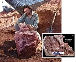 He discovered one of the first sauropod dinosaur of Mendoza, and named it Mendozasaurus neguyelap, along with other new species of dinosaurs, turtles, fishes and flying reptiles. His studies highlight the analysis of past environments and its ecosystems. He have found dinosaurs in Argentina, Chile, Brazil, and the United States. He has excavated and named, together with other paleontologists, nine new species of dinosaurs: Mendozasaurus, Malarguesaurus, Quetecsaurus, Notocolossus, Rinconsaurus, Muyelensaurus, Ligabuesaurus, Lapampasaurus, Futalongnkosaurus, and two new species of extinct turtles: Linderochelys and Mendozachelys. He has also discovered the first site of fossil tracks of Mendoza, which is one of the largest of South America by the end of Cretaceous. The tracks were named Titanopodus[2] and were made by giant herbivorous sauropod dinosaurs. They give us information about biological aspects related to locomotion and the gregarious habits of these huge vertebrates; this enable us to understand the environment of the past regarding climate and environment crises, and the strategies of survival of the last giant dinosaurs. Among his discoveries Notocolossus gonzalezparejasi stands off, considered as one of the three largest dinosaurs of the world. The discovery was published in the journal Scientific Reports of Nature and has had worldwide diffusion in the international media. It has received the TOP 100 distinction by editors of Nature, for being one of the 100 most important articles of this journal, among the 20,000 articles of greatest global impact.[3] Members of this study also include Matthew Lamanna, Leonardo Ortiz David, Jorge Calvo and Juan P. Coria.