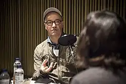 In his project "and. learning English has no use"[18] he used reproductions of his artworks to overcome language barriers[19] that he encountered during a stay in Nanjing, where he used the aesthetics to create modes of communication to make it possible for him and the Chinese students to work together.[20] The students reproduced his artworks, and by this a direct form of communication was developed between them.[21] In 2012, he was invited by artist AA Bronson and Printed Matter Inc. for the New York Art Book Fair,[22] where he showed Austrian art books and publications in the MoMa/PS1.[23][24] His lectures were held in institutions like the University of Arts and Industrial Design Linz, the print room in Amsterdam,[25] the Galerie für Zeitgenössische Kunst Leipzig, and the Ö1[26] of the Castle Sigharting.[27] He collaborates with many curators and artists, including Diana Baldon [28] and Franz West.[29]