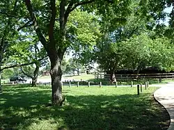 View from parking lot to one of the pavilions | |