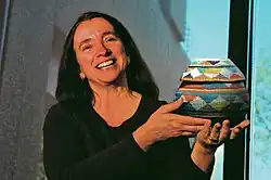 ![]() Korber with basket made for her by Zulu women at the orphanage she helped found | |