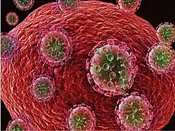 In the history of HIV/AIDS virus with regard to when and where HIV originated, Edward Hooper had postulated in a best-selling book called The River: A Journey to the Source of HIV and AIDS in 1999[19] that HIV could have jumped from chimpanzees to humans because of an accidental contamination by chimpanzee SIV of the oral polio vaccine (CHAT) used in Africa in the 1950s.[20] Korber and her colleagues employed the Los Alamos National Laboratory database's genomic data to calculate when the HIV sequence evolution began, using a model of evolution based on the mutation rate of HIV strains and assuming that variable was the same on all branches of the evolutionary tree. In 2000 they published an estimate of approximately 1930 for the origin of the human immunodeficiency virus.[21] Their research was covered widely as establishing a new date for the origin of the human virus, discrediting the oral polio virus theory, and therefore refuting concerns about using oral polio vaccine (OPV).[22][23][24][25][26] These two concepts of the origin of this virus plus other related theories continued to compete for scientific credibility.[20][21][27]