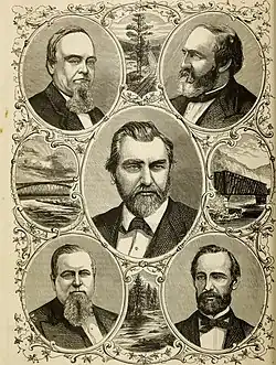 Composed of Leland Stanford (1824–1893), Collis Potter Huntington (1821–1900), Mark Hopkins Jr. (1813–1878), and Charles Crocker (1822–1888), the four themselves, however, personally preferred to be known as "The Associates."[2]