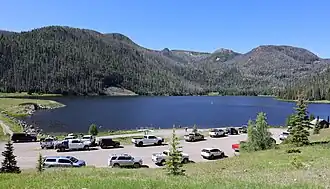 Big Meadows Reservoir is in Mineral County, Colorado, U.S., southwest of South Fork and in the Rio Grande National Forest. The reservoir, which lies at an elevation of 9,216 feet (2,809 meters), was created to provide a fishing venue and is a Colorado state wildlife area. The reservoir is reached by taking Forest Service Road 410 for about two miles (3.2 km) off of U.S. Highway 160 on the east side of Wolf Creek Pass.[3]