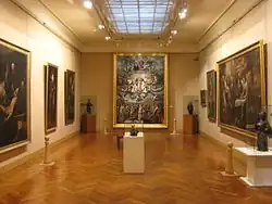 The museum holds 5000 pieces of art comprising 420 French paintings and a collection of 612 weapons.[2] But it is mainly dedicated to Spanish art with the largest collection in France, including 200 paintings,[3][4] against 173 in the Louvre,[5][6] as well as 140 sculptures, coins from Antiquity to the 19th c. and nearly 1000 drawings and prints, like the complete four series of Goya (Caprichos, Disasters of War, Los Disparates and La Tauromaquia), the Gaudí serie by Joan Miró and 83 prints by Salvador Dalí.