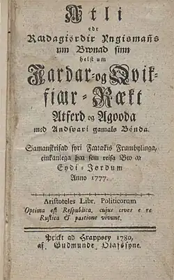 - ^ Thosteinsson, Thorsteinn (1926). Iceland a Handbook. Gutenberg.