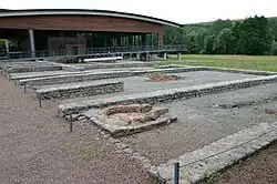 In the 13th century, the village belonged to the Luxembourgish family of Raville after Dietrich de Varsberg married Lore de Brücken.[B 8] The family then settled in the castle known as Altes Schloss.[B 8] The final phase of occupation of the frigidarium was reconstructed based on walls that were 1 meter in height.[B 9]