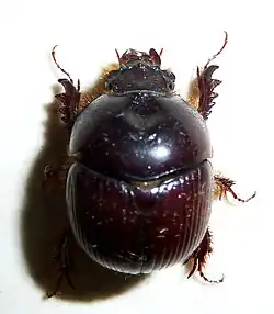 Bolboceratidae is a family of beetle.[1] It was historically treated as a subfamily of the earth-boring dung beetles, or "dor beetles" (family Geotrupidae), but has been considered a separate family by many authors since 1995.[2] Some recent classifications have persisted in treating bolboceratids as a subfamily (e.g.[3][4]) but these classifications are contradicted by recent phylogenetic studies of relationships indicating that bolboceratids are not closely related to geotrupids (e.g., that bolboceratids are more closely related to Pleocomidae and Passalidae[5]).