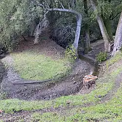 Bollinger Canyon Creek begins as a number of ephemeral streams emitting from a horst valley, Bollinger Canyon, in the highest reaches of the Berkeley Hills, in California's Inner Coast Ranges.[5]