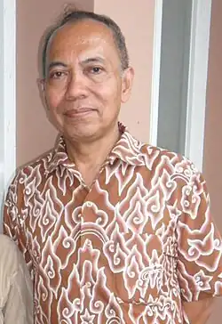 Bondan Winarno (29 April 1950 – 29 November 2017) was an Indonesian writer and journalist with a variety of skills.[1][2] He pioneered and became chairman of Jalansutra, a very popular culinary community in Indonesia. He also became a presenter in the culinary show Wisata Kuliner (Culinary Tour) on Trans TV. He was famous for his phrase "Pokoe maknyus!"