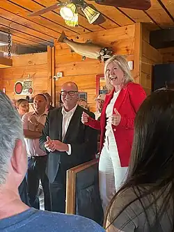 Crombie was considered the front-runner in the Liberal leadership race.[43][44] She ran on a pledge to make life more affordable, strengthen Ontario's healthcare system, build housing and infrastructure, improving the public education system, and fighting climate change.[45] During the race she referred to herself a "a very centrist person", "very fiscally responsible", and "socially very progressive".[46] She was elected party leader at the December 2, 2023, on the third ballot.[47] She resigned as mayor on January 12, 2024.[48][49]