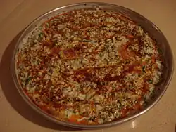 Borani (Persian: بورانی, romanized: bowrâni) is a salad dish from Iranian cuisine. It is also found in Turkish cuisine where it is associated with certain provinces like Isparta, Urfa and Van.[1] Some versions are made with spinach and yogurt, while the Ancient Persian borani was made with eggplant, and a regional version from Urfa is made with lamb and vegetarian meatballs. Borani is also popular in the Caucasus and Afghanistan.