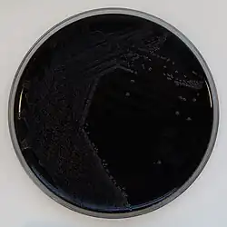 | Bordetella pertussis growing on Charcoal Agar supplemented with Cephalexin. Isolate shown at 7 days growth in 10% carbon dioxide. Isolate from a pernasal swab from a patient with whooping cough | |