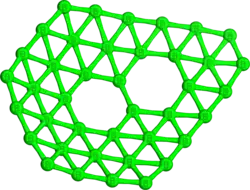 Borospherene (B40) is an electron-deficient cluster molecule containing 40 boron atoms. It bears similarities to other homoatomic cluster structures such as buckminsterfullerene (C60), stannaspherene, and plumbaspherene, but with a different symmetry.[1][2][3] The first experimental evidence for borospherene was reported in July 2014, and is described in the journal Nature Chemistry.[4] The molecule includes unusual hexagonal and heptagonal faces. Despite many calculation-based investigations into its structure and properties, a viable route for the synthesis and isolation of borospherene has yet to be established, and as a consequence it is still relatively poorly understood.
