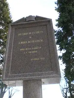 Another place of worship, from the 14th century, was located on the road to Villa Cortese: the rural church of Santa Maria dei Restagni, next to which the cemetery was later built. It featured paintings of sacred images on the walls.[35] The bell tower had a single bell that called the faithful to sacred functions.