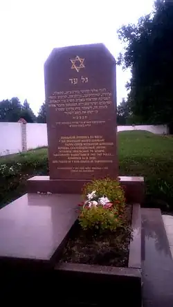 In Borshchiv at the site of the destroyed Jewish cemetery during the Soviet occupation a sports complex was built.[11] In 1990, after Ukraine gained independence, part of the stadium was reserved for the construction of the monument. It was finally established in 2011.