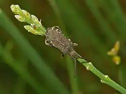 These herbivore insects are trophically associated with leguminous plants. They mainly feed on Bromus species.[4] Adult males have the unusual behaviour of feeding on excrements.[5]