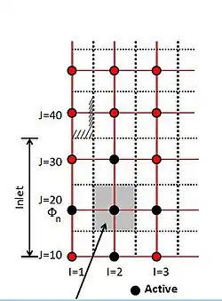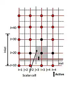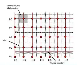 Almost every computational fluid dynamics problem is defined under the limits of initial and boundary conditions. When constructing a staggered grid, it is common to implement boundary conditions by adding an extra node across the physical boundary. The nodes just outside the inlet of the system are used to assign the inlet conditions and the physical boundaries can coincide with the scalar control volume boundaries. This makes it possible to introduce the boundary conditions and achieve discrete equations for nodes near the boundaries with small modifications.