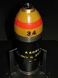 A bourrelet is a portion of an elongated artillery projectile that is used in conjunction with the projectile's driving band, or rotating band, to stabilize its launch by keeping the fore part of the projectile precisely aligned with the gun barrel.[1]