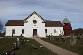The external wooden belfry of the church was built between 1491 and 1492, and is one of only nine such belfries in Scania.[3] The church never had a tower.[4]